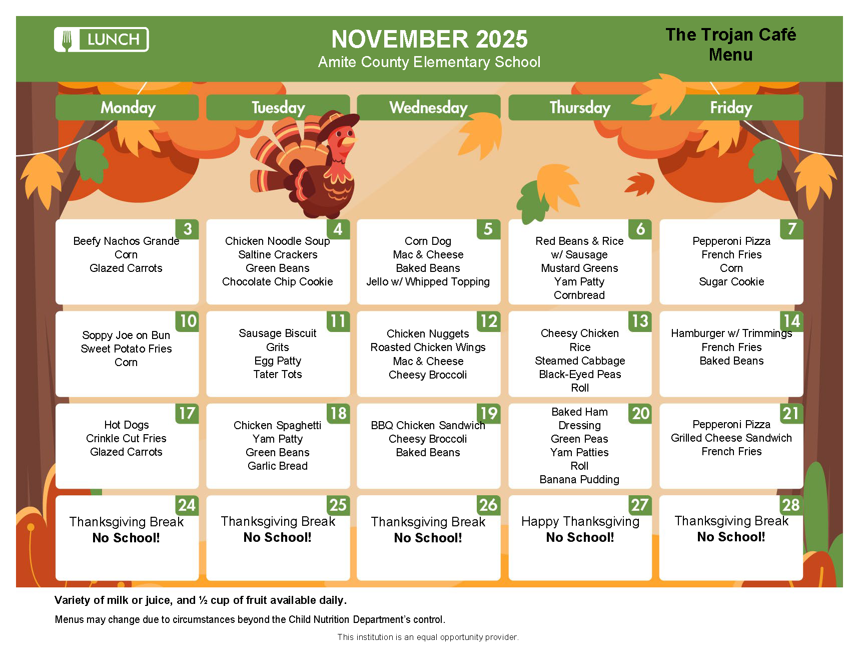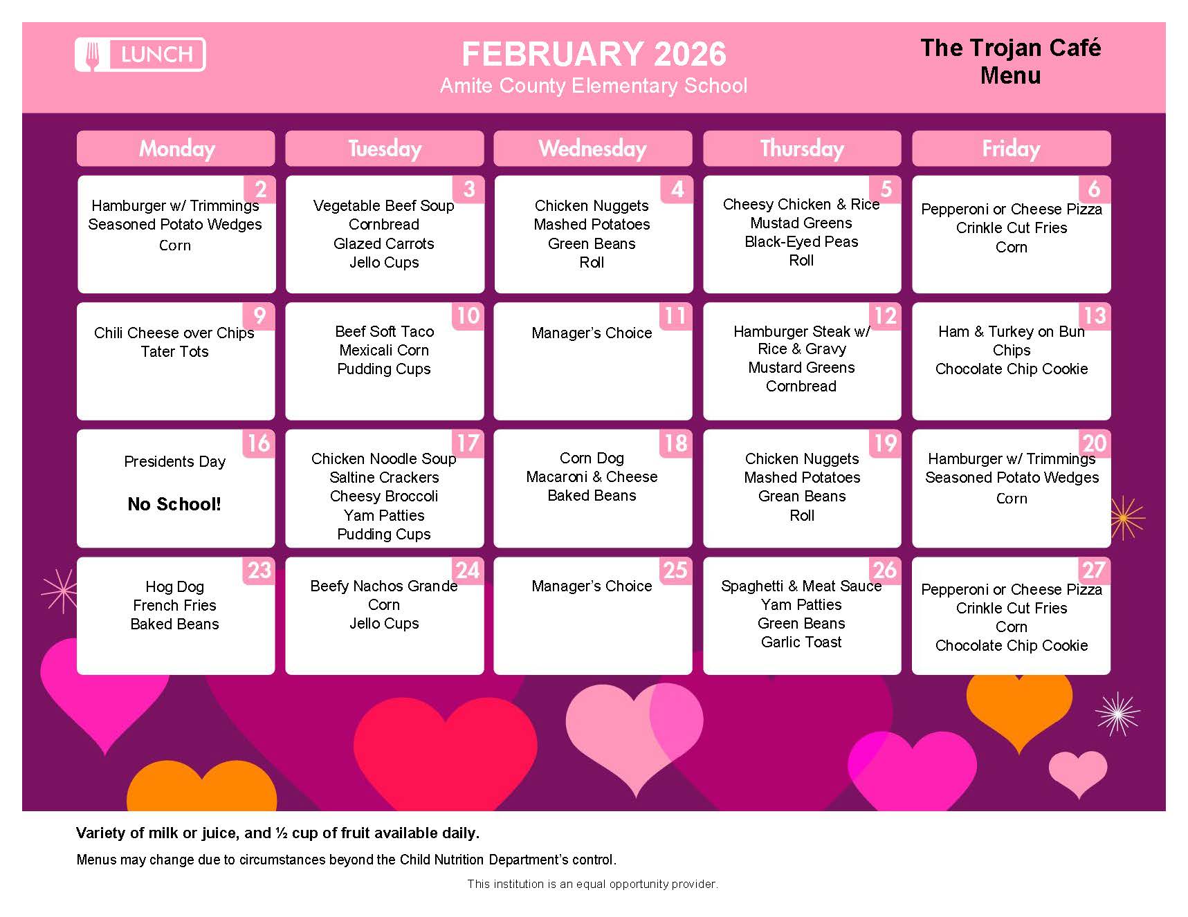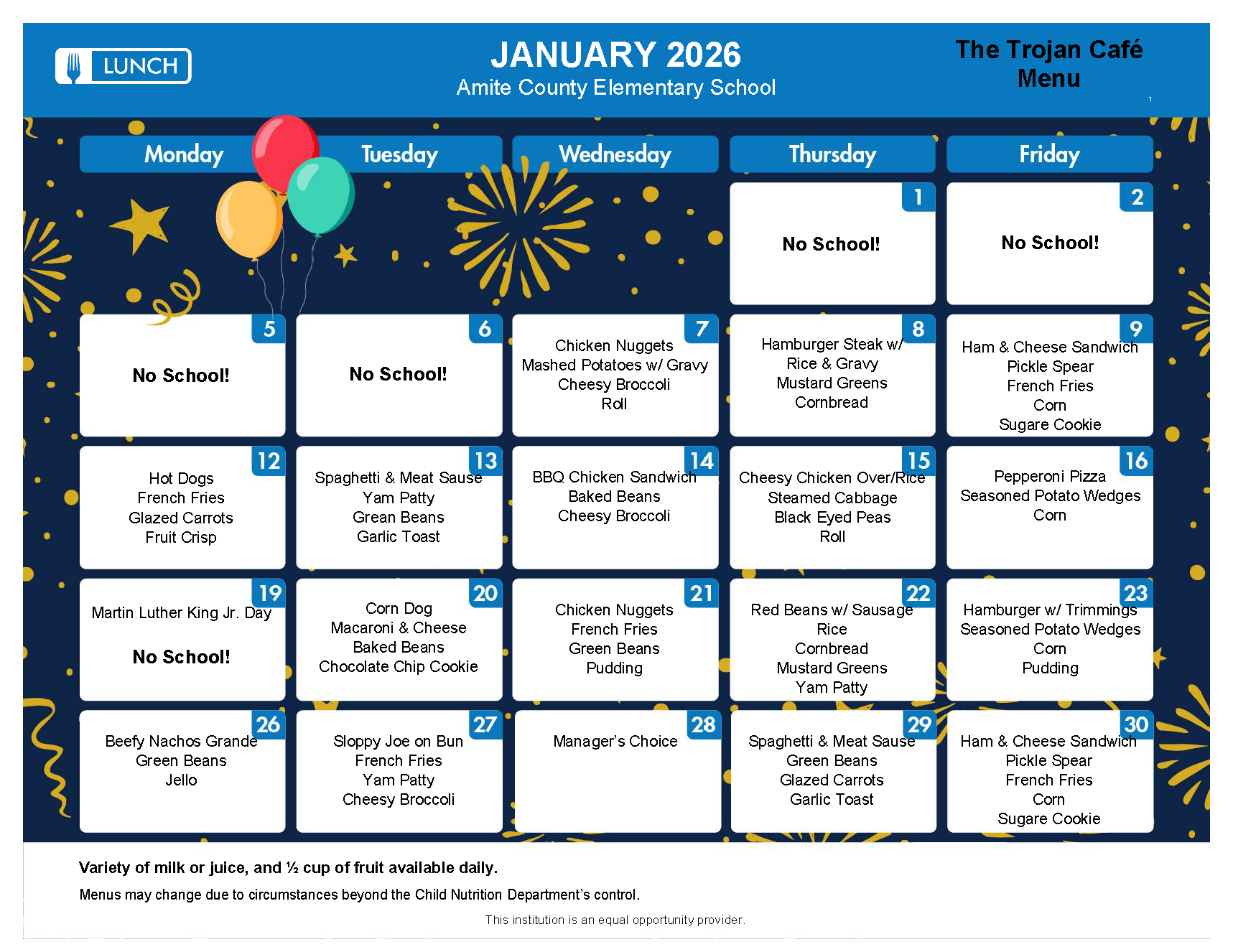 Elementary School Menu