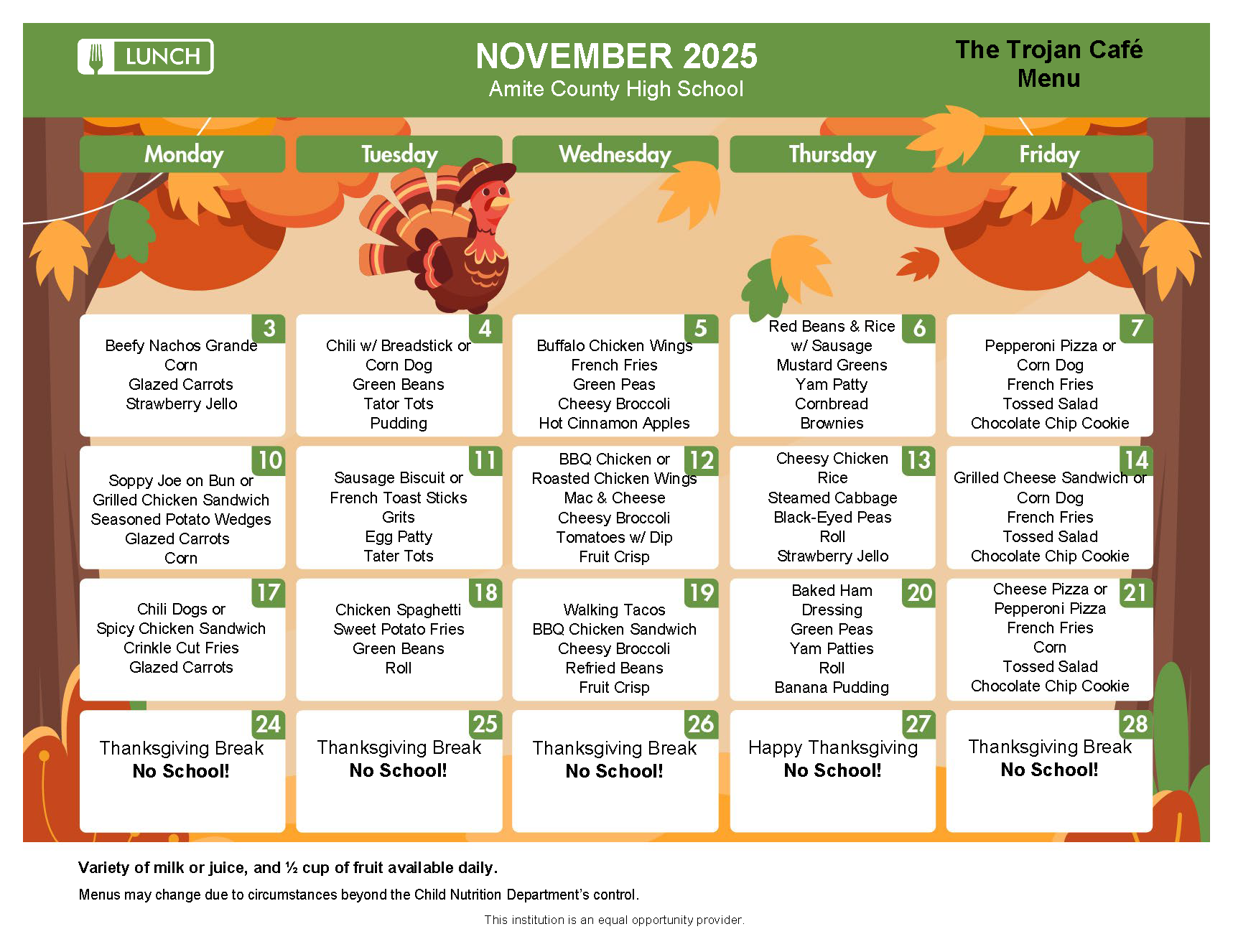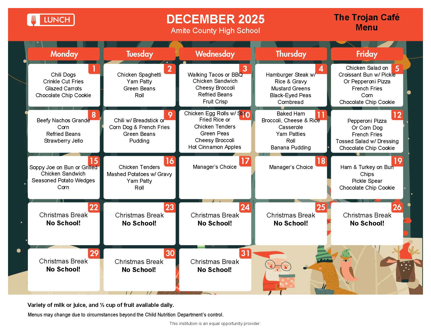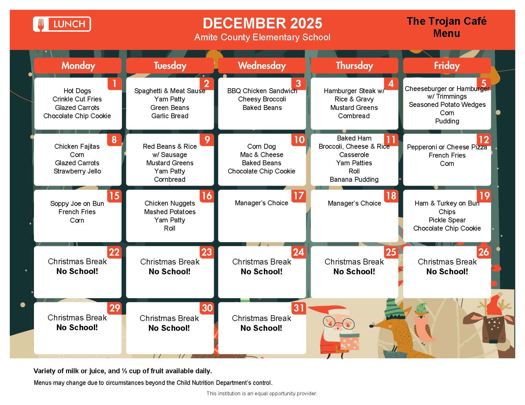Elementary School Menu