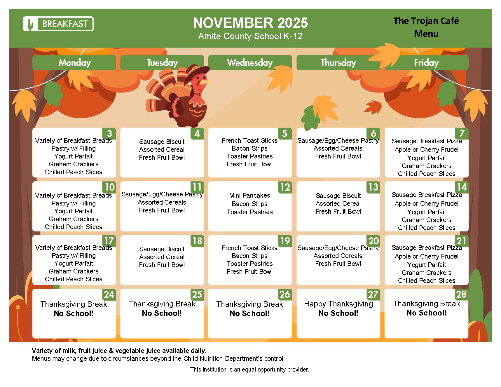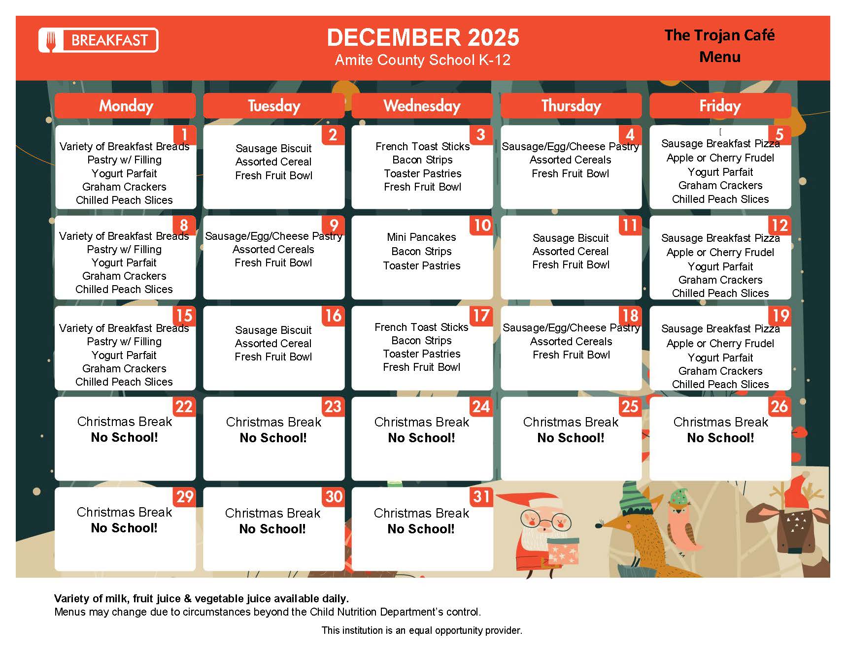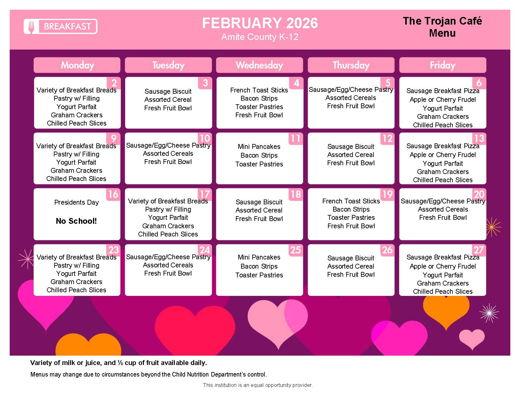K-12 Breakfast Menu