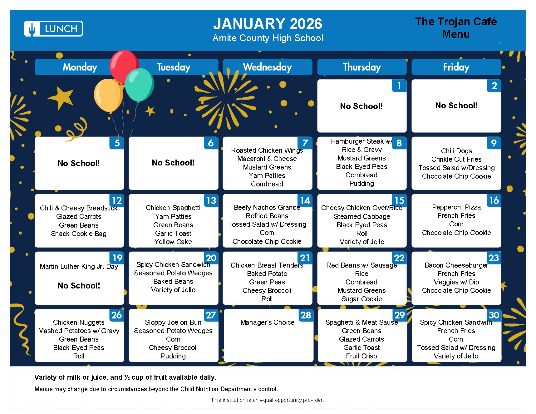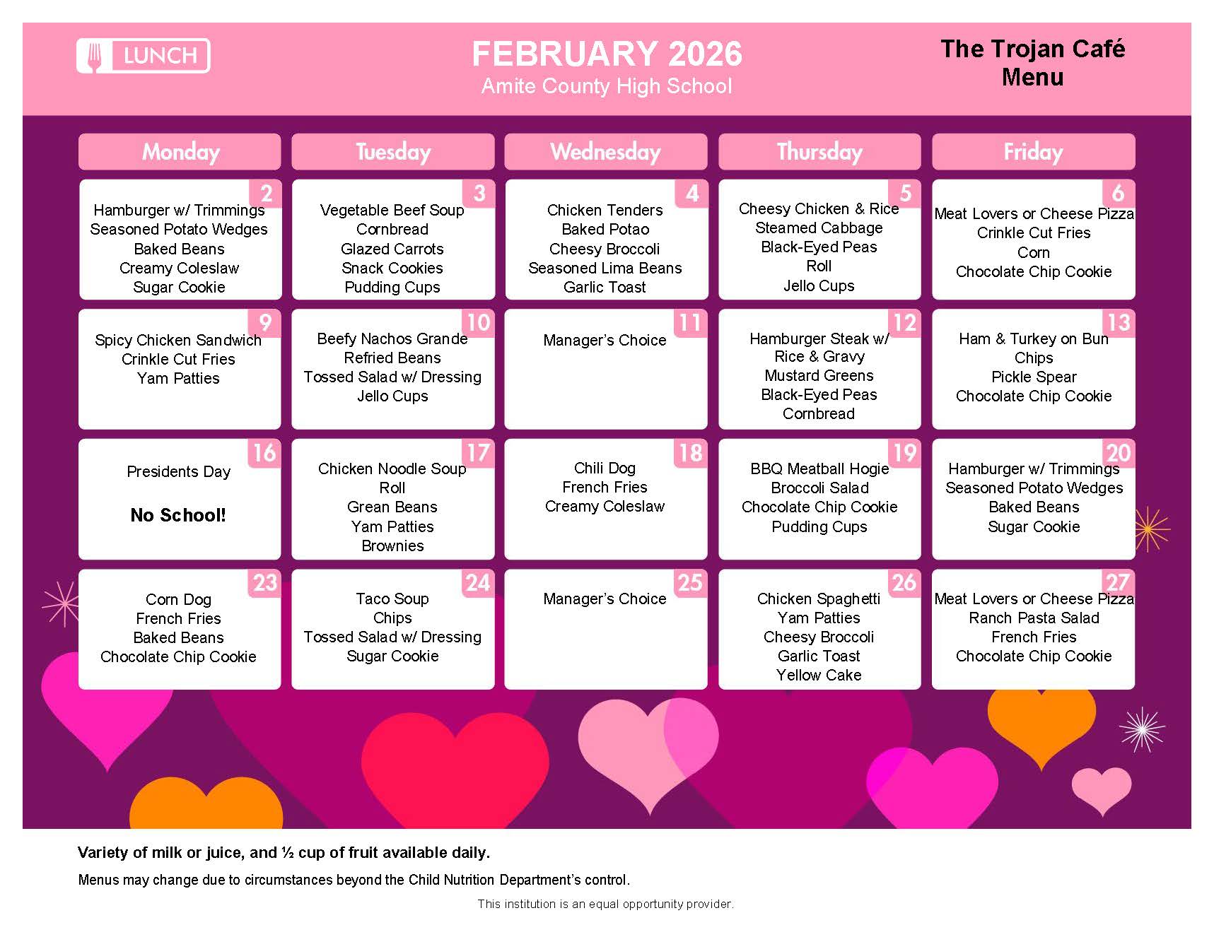 High School Menu